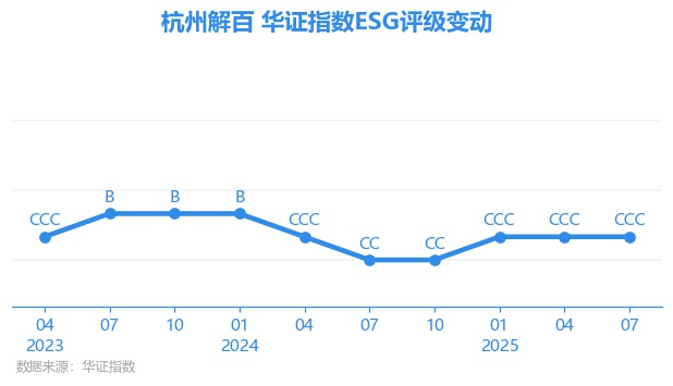 【ESG动态】杭州解百(600814.SH)获华证指数ESG最新评级CCC,行业排名第16