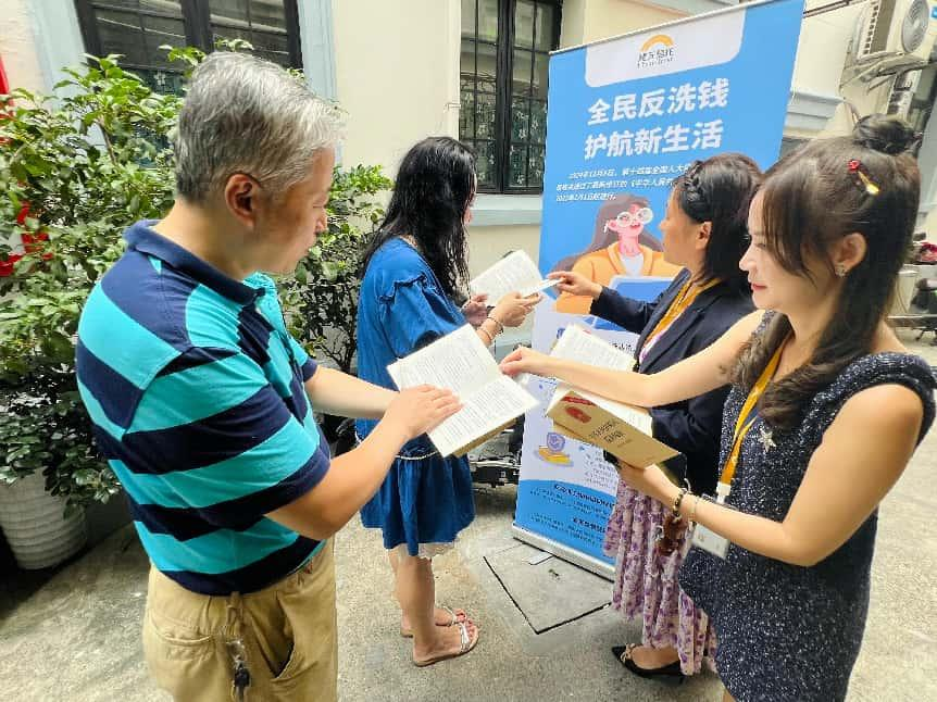 走进南京东路街道,为阿姨爷叔讲解理财陷阱以及反洗钱知识。