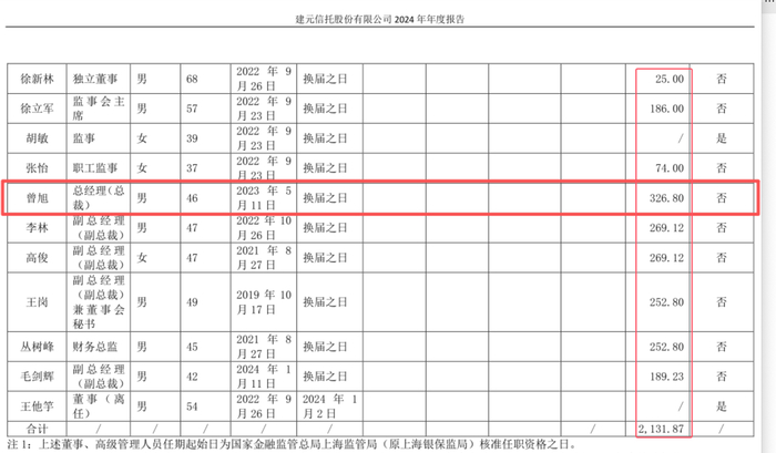 1 、建元信托工资最高的总经理