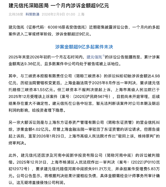 3 、曾旭本来是来救火的,不过,公开资料显示,建元信托并没有获得好的发展,甚至可以说是深陷困局,公开资料显示,一个月的被诉讼的金额达到 9 个亿。