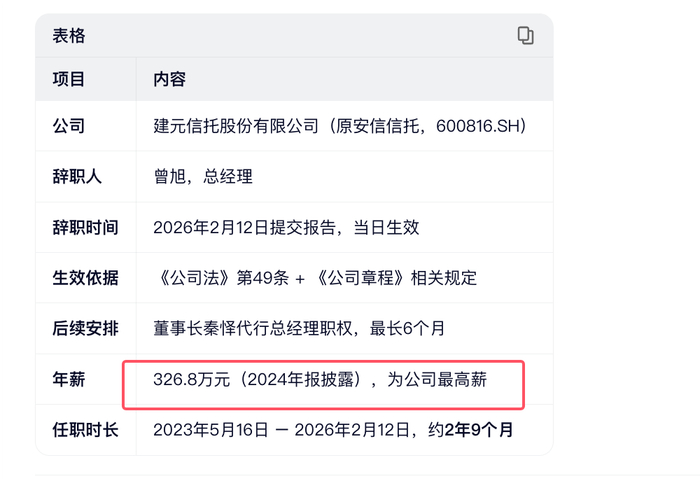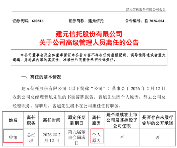 信托界蛇年最后惊雷:建元信托工资最高的总经理曾旭任期未到辞职!