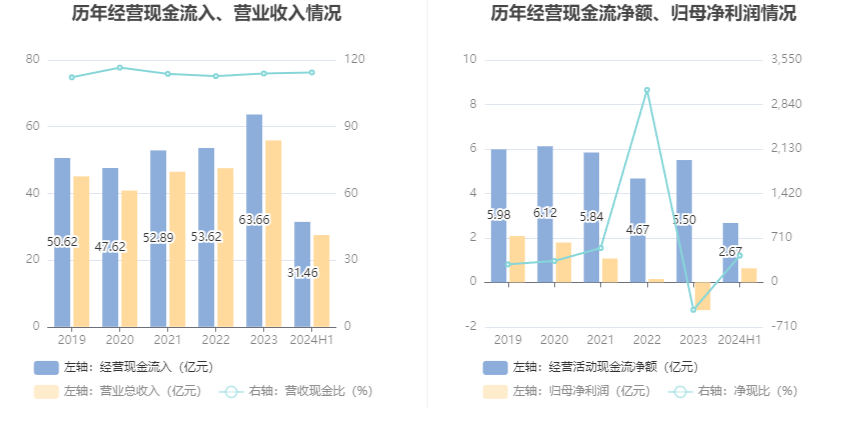 2024年上半年,公司营业收入现金比为114.39%,净现比为426.43%。