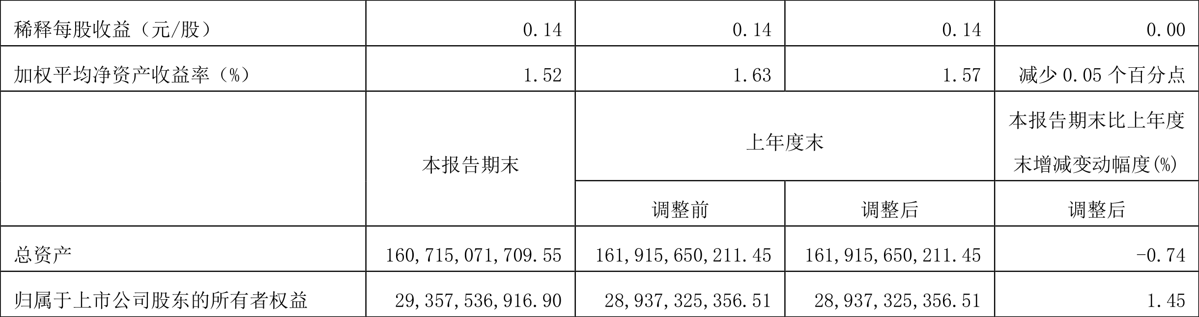 数据显示,2024年第一季度公司加权平均净资产收益率为1.52%,较上年同期下降0.05个百分点;公司2024年第一季度投入资本回报率为0.98%,较上年同期下降0.10个百分点。