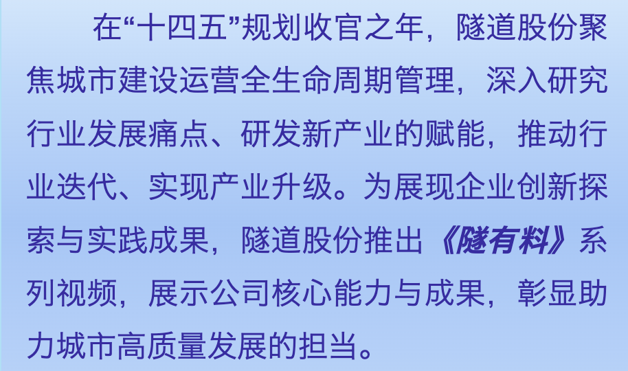 在数字化转型浪潮下,“智城云巡”不仅是技术创新的缩影,更是城市安全从“治已病”转向“治未病”的里程碑。隧道股份城市运营将持续以科技创新驱动城市基础设施高效运营,为交通强国建设注入更多智慧力量。