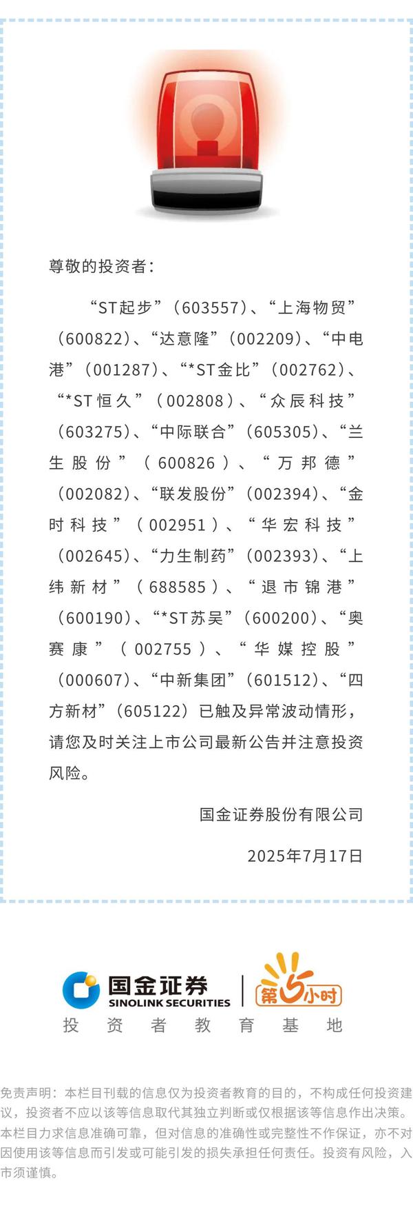关于“ST起步”、“上海物贸”等证券交易异常波动的风险提示