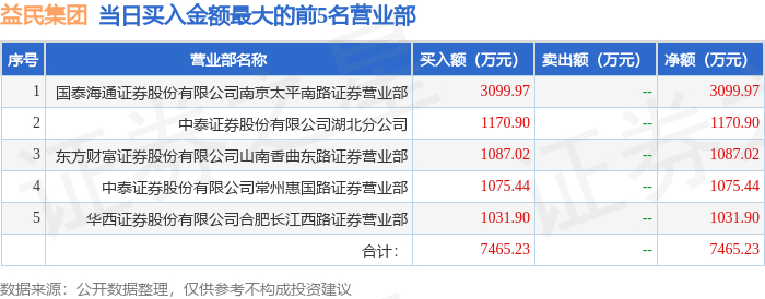 12月25日益民集团(600824)龙虎榜数据:游资作手新一、一瞬流光上榜