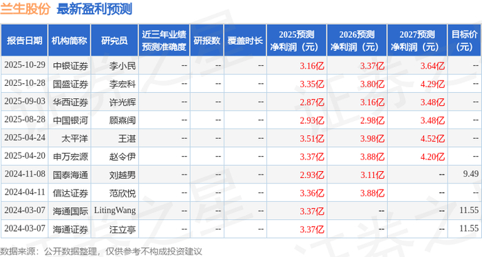 最新盈利预测明细如下: