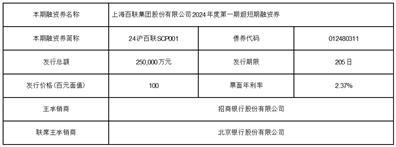 公司于2024年1月24日完成了上海百联集团股份有限公司2024年度第一期超短期融资券发行,兑付日期为2024年8月16日。现将发行结果公告如下: