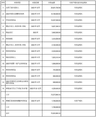 公司及下属控股子公司于2023年第四季度累计收到政府补助为人民币75,053,985.55元(未经审计),其中与收益相关的政府补助金额为73,273,985.55元、与资产相关的政府补助金额为1,780,000.00元。