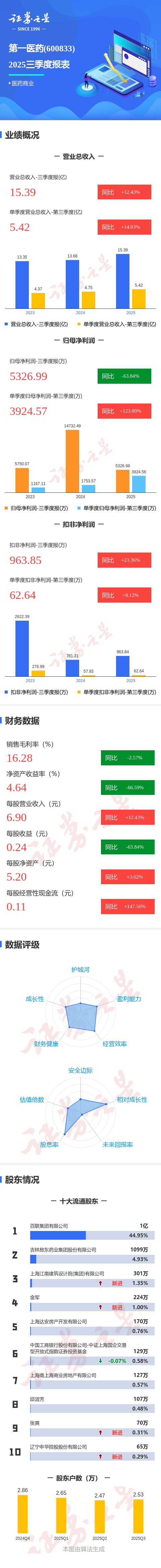 图解第一医药三季报:第三季度单季净利润同比增长123.80%