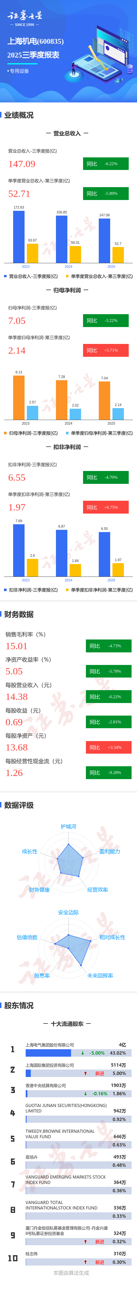 图解上海机电三季报:第三季度单季净利润同比增长5.71%