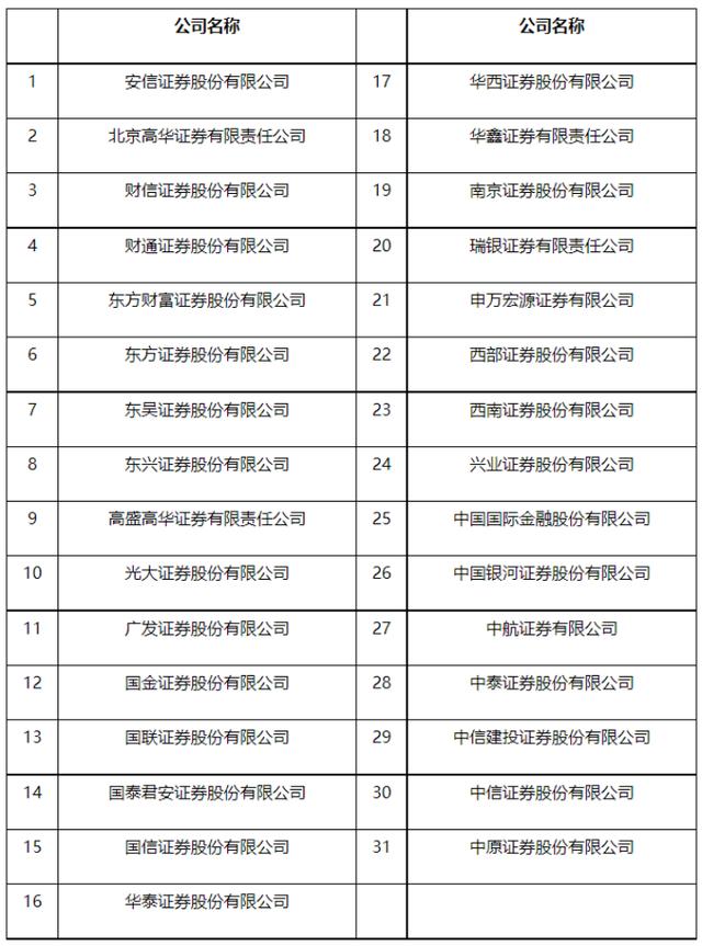 红星资本局6月22日消息,6月21日,证监会官网公布了证券公司“白名单”,共有31家券商上榜。既包含头部券商,也有中小规模的券商。