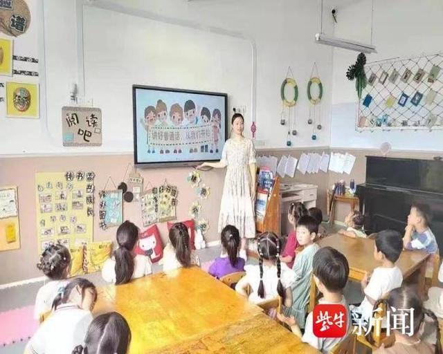 以“童心启蒙”播种子,夯实推普“起跑线”基础。联合海通镇实验幼儿园,为百余名幼儿开设“趣味学普通话”特色课堂。教师们通过儿歌传唱、绘本共读、情景对话等生动形式,引导孩子们感受普通话的魅力,教孩子们正确发音、规范表达,在幼小心灵中播下“讲好普通话”的种子,推动推普工作从娃娃抓起,实现语言文化的代际传承。