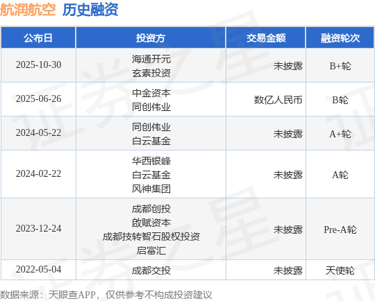 【投融资动态】航润航空B+轮融资,投资方为海通开元、玄素投资等
