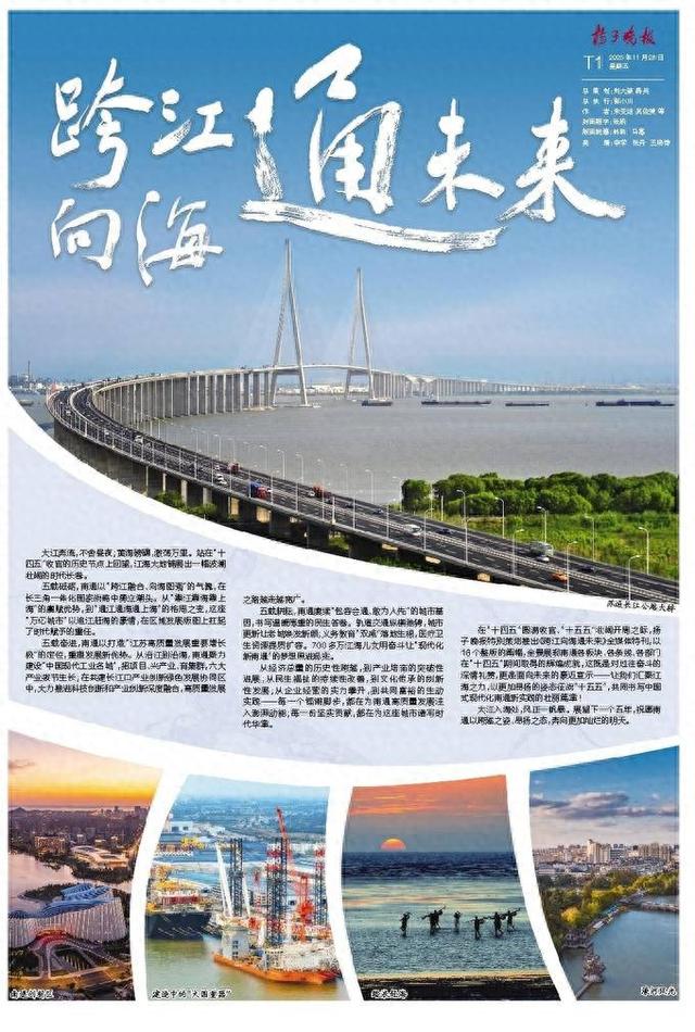 从经济总量的历史性跨越,到产业培育的突破性进展;从民生福祉的持续性改善,到文化传承的创新性发展;从企业经营的实力攀升,到共同富裕的生动实践——每一个铿锵脚步,都在为南通高质量发展注入澎湃动能;每一份坚实贡献,都在为这座城市谱写时代华章。 在“十四五”圆满收官、“十五五”壮阔开局之际,扬子晚报特别策划推出《跨江向海通未来》全媒体特刊,以16个整版的篇幅,全景展现南通各板块、各条线、各部门在“十四五”期间取得的辉煌成就,这既是对过往奋斗的深情礼赞,更是面向未来的豪迈宣示——让我们汇聚江海之力,以更加昂扬的姿态征战“十五五”,共同书写中国式现代化南通新实践的壮丽篇章!