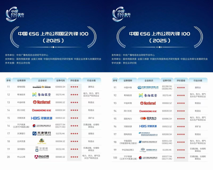 近日,ESG中国·创新年会(2025)暨首届ESG国际博览会在北京举办。在主论坛活动上,中央广播电视总台财经节目中心发布《2025年度ESG行动报告》,并公布“中国ESG上市公司先锋100(2025)”“中国ESG上市公司央企先锋100(2025)”等权威榜单。