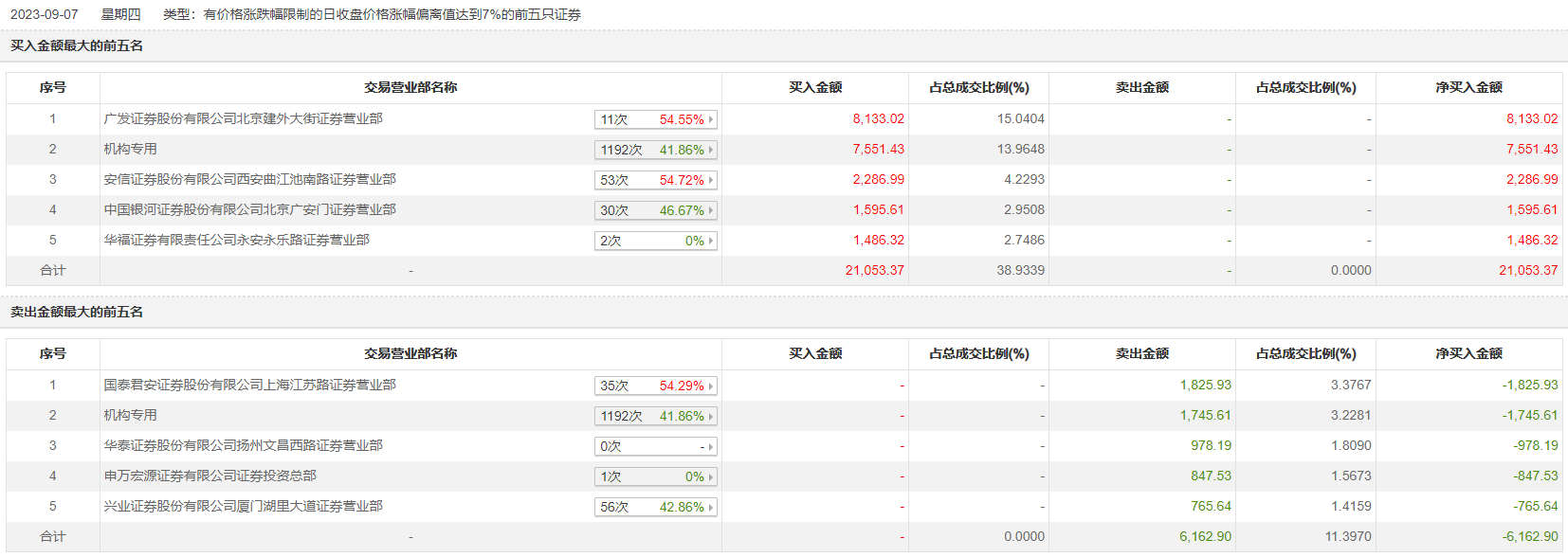 具体来看,机构买入7551.43万元,卖出1745.61万元,合计净买入5805.82万元。此外,知名游资现身龙虎榜,广发证券北京建外大街证券营业部、安信证券西安曲江池南路证券营业部分别买入8133.02万元、2286.99万元;章盟主(国泰君安证券上海江苏路证券营业部)、华泰证券扬州文昌西路证券营业部分别卖出1825.93万元、978.19万元。
