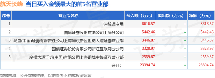 1月7日航天长峰(600855)龙虎榜数据:北向资金净卖出66.16万元