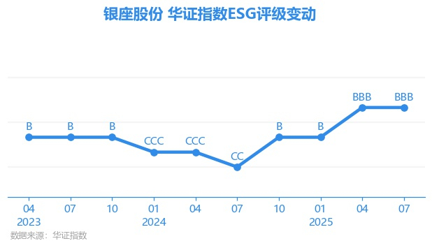 日前,华证指数公布了新一期(2025年7月31日)的ESG评级结果,银座股份(600858.SH)获得BBB评级(华证指数评级为C起至AAA九档,C为最低档,AAA为其最高一级评级/AA为其第二档),上一期(2025年4月30日)ESG评级为BBB。本期ESG评级在39家多品类零售行业A股上市公司中排名第1(上一期排名第1)。