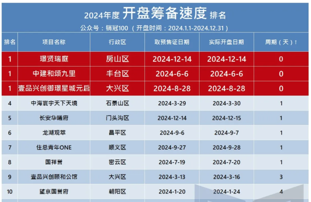 取得预售证当天开盘,北京建工·璟贤瑞庭位列2024年度开盘速度排行榜首位。