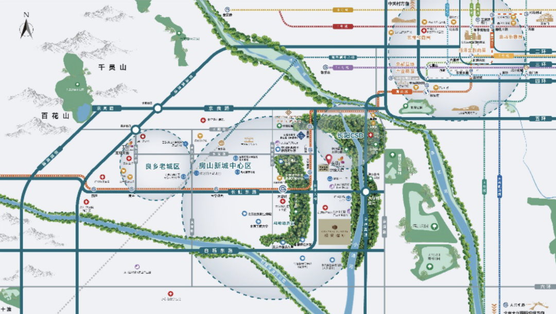 璟贤瑞庭位于房山区拱辰街道,距地铁房山线良乡大学城站直线1.5公里,周边多所高等院校,教育资源丰富,中小学有北京十二中、北理工附属实验学校,以及规划第六实验学校、清华附中等,项目东南角就是自配的12班幼儿园;生活配套方面,有首开龙湖北京熙悦天街、时代广场、首创奥莱等商业项目。