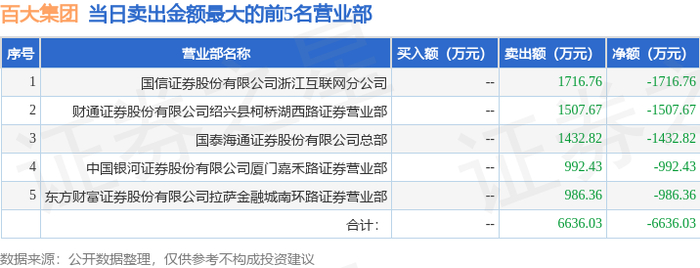 证券之星消息,沪深交易所2025年12月29日公布的交易公开信息显示,百大集团(600865)因有价格涨跌幅限制的日收盘价格跌幅偏离值达到7%的前五只证券登上龙虎榜。此次是近5个交易日内第1次上榜。
