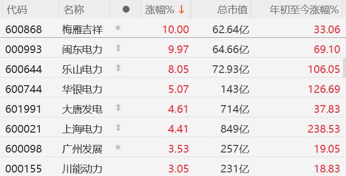 A股电力股走强,梅雁吉祥、闽东电力涨停