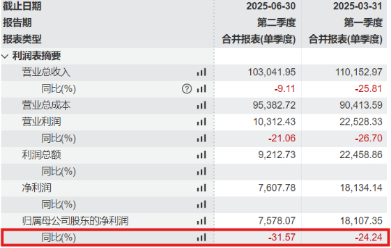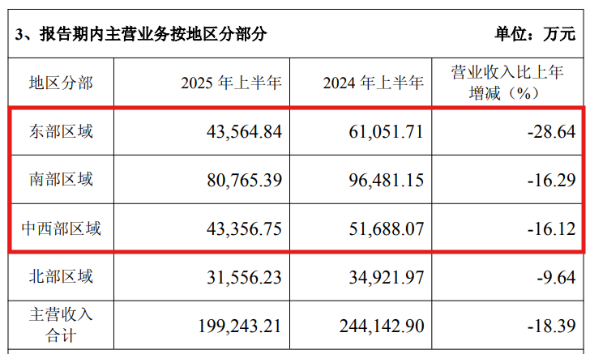 不过,南部地区收入仍未摆脱下滑态势,同期同比下降12.4%,区域复苏进程存在分化。受此影响,公司二季度营收同比降幅收窄至9.11%,但盈利端压力未得到同步缓解,归母净利润同比仍下滑31.57%,反映出渠道调整的成效暂未完全传导至利润端,盈利修复仍需时间。