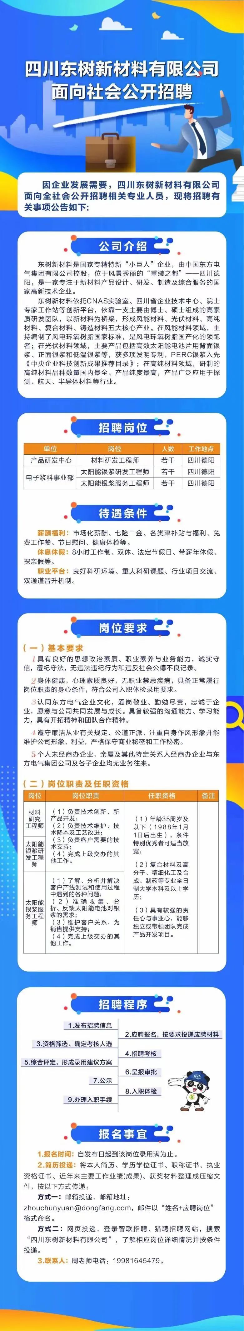 【社招】东方电气集团旗下四川东树新材料有限公司面向社会公开招聘