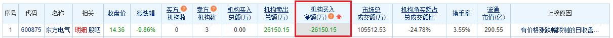 (600875.SH)股价收报14.36元,跌幅9.86%。