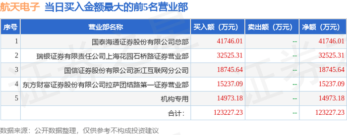 12月26日航天电子(600879)龙虎榜数据:机构净买入1.5亿元