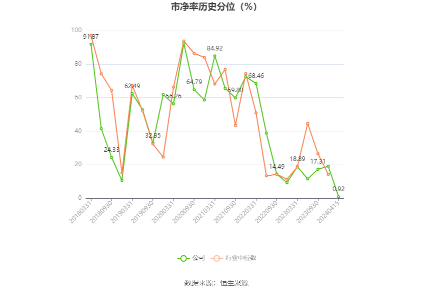 市盈率为负时,不显示当期分位数,会导致折线图中断。