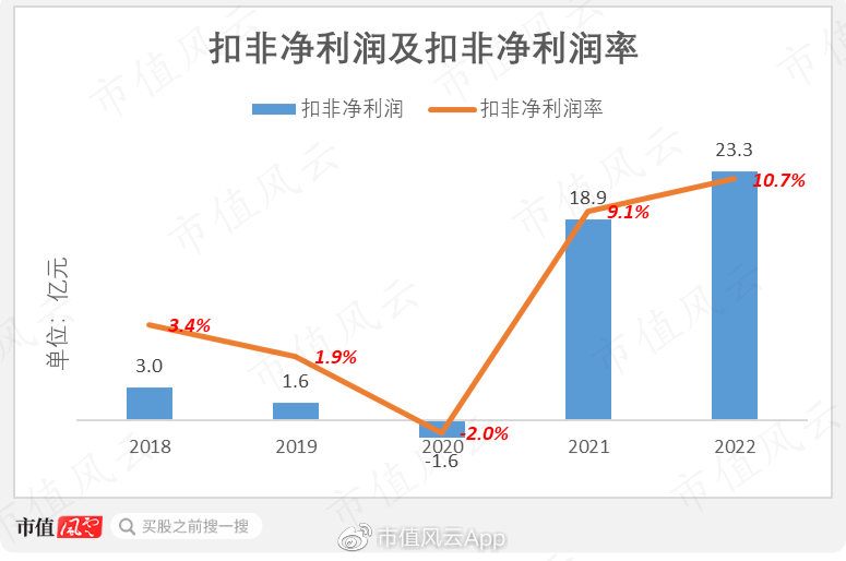 2022年,公司扣非净利润23.3亿元,同比增23.5%,扣非净利润率10.7%,同比提升1.6个百分点,创下近5年来的盈利新高。