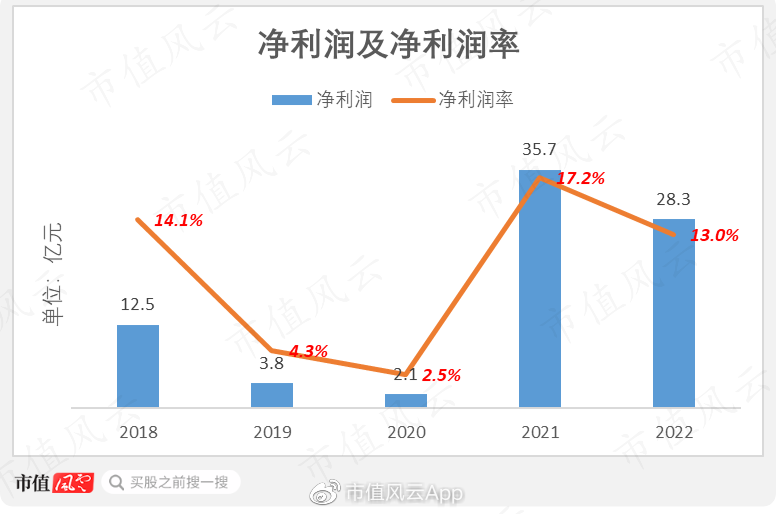 同年,净利润28.3亿元,同比下降20.9%;但净利润率仍旧较高,为13.0%。