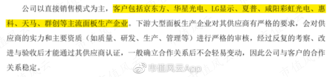该业务为公司带来了众多大客户资源,包括京东方(000725.SZ)、华星光电、LG显示、夏普等知名面板厂商。