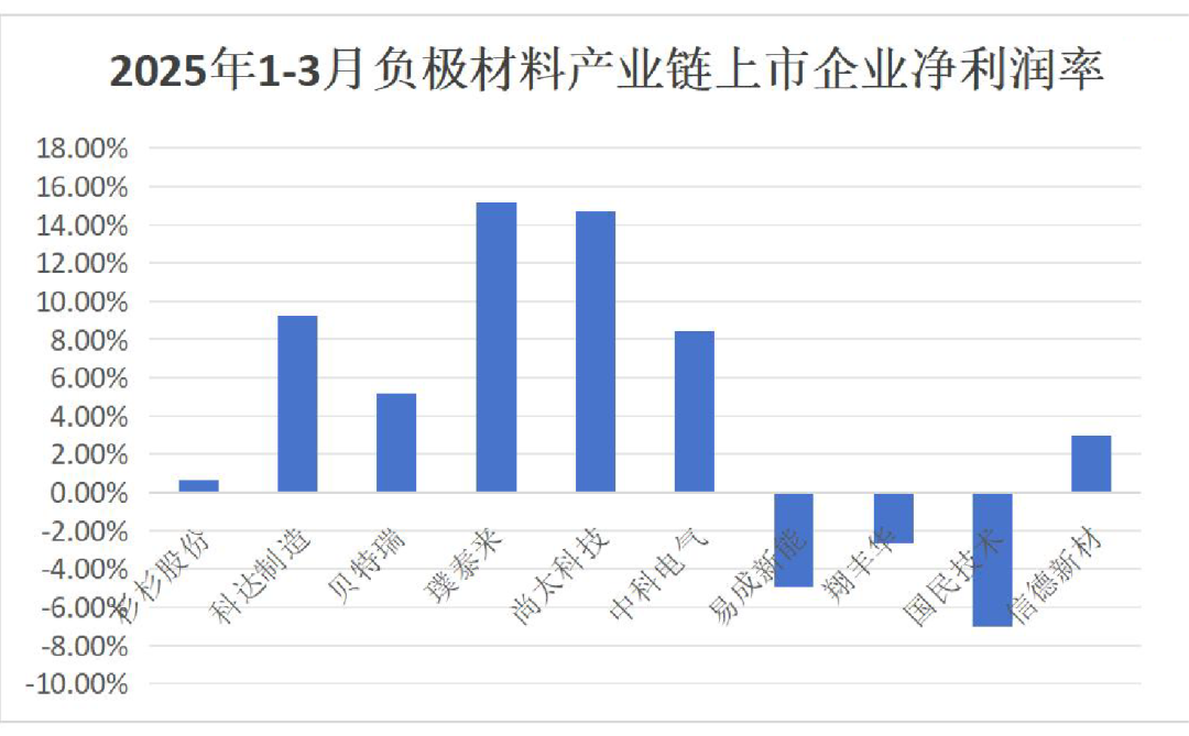 2025年1-3月,10家负极材料产业链企业的营收总额为202.25亿元,净利润总额为13.48亿元(包含亏损企业的亏损额)。