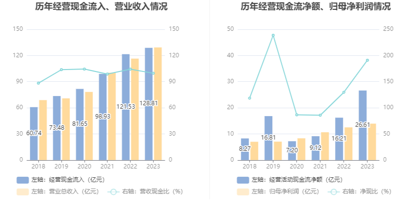 2023年,公司营业收入现金比为99.62%,净现比为191.01%。