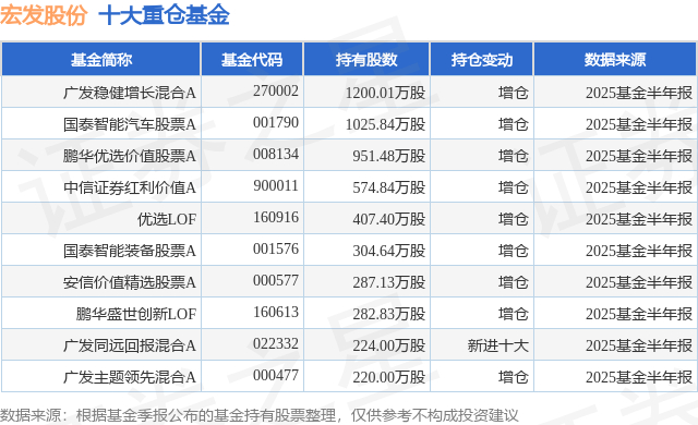 重仓宏发股份的前十大公募基金请见下表: