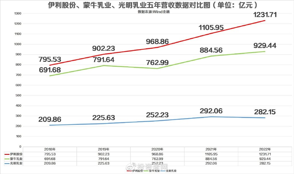2022年,伊利营业总收入达到1231.71亿元,同比增11.37%;归母净利润94.31亿元,同比增8.34%,营收净利再创历史新高。