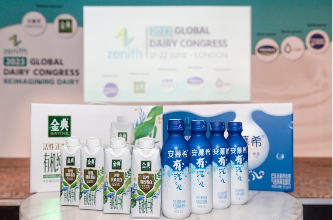 金典活性乳铁蛋白有机纯牛奶与安慕希有汽儿气泡酸奶亮相大会现场