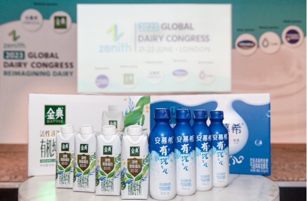 金典活性乳铁蛋白有机纯牛奶与安慕希有汽儿气泡酸奶携手亮相大会现场