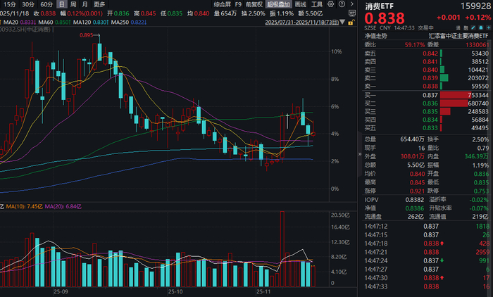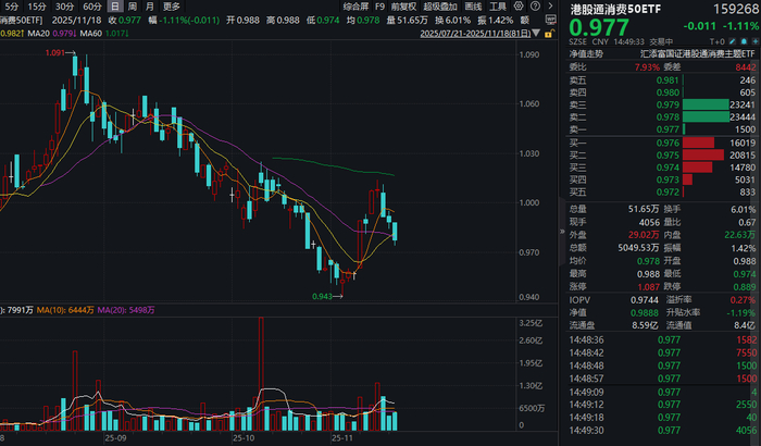 港股方面,新消费“纯”度更高的港股通消费50ETF(159268)回调超1%,盘中成交额超5200万元!资金面上,近20日累计“吸金”超10亿元,规模同类持续领先!