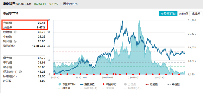 聚焦大消费板块,估值性价比仍极具吸引力。截至11月17日,消费ETF(159928)标的指数市盈率TTM为20.41,处于近10年6.67%分位点,比近10年历史上超93%的时间便宜,估值性价比更高!