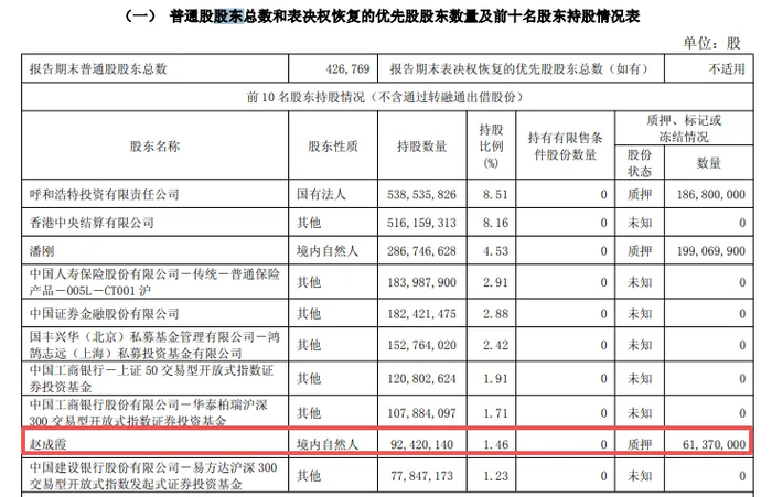 截至公告披露日,潘刚持有公司286,746,628股,占公司总股本的4.53%,另据2025年三季报,其持有的199,069,900股处于质押中,占其持股比例的69.42%,接近七成股份处于质押中。