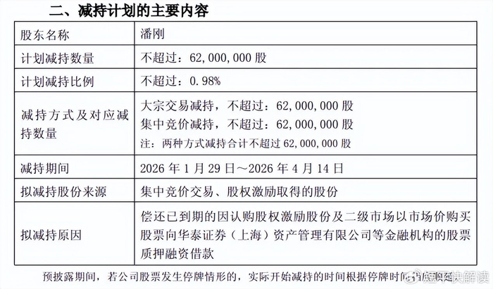 掌舵者潘刚要减持
