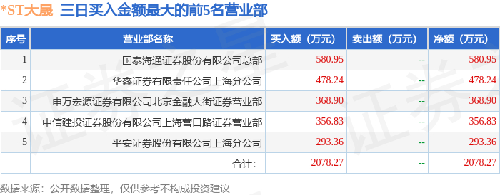 证券之星消息,沪深交易所2025年12月26日公布的交易公开信息显示,*ST大晟(600892)因ST、*ST证券连续三个交易日内收盘价格涨幅偏离值累计达到12%的证券登上龙虎榜。此次是近5个交易日内第1次上榜。