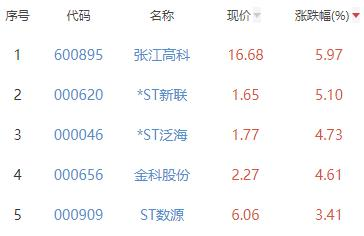 其中,张江高科、*ST新联、*ST泛海、金科股份、ST数源位列板块涨幅前五位,涨幅分别为5.97%、5.10%、4.73%、4.61%、3.41%。