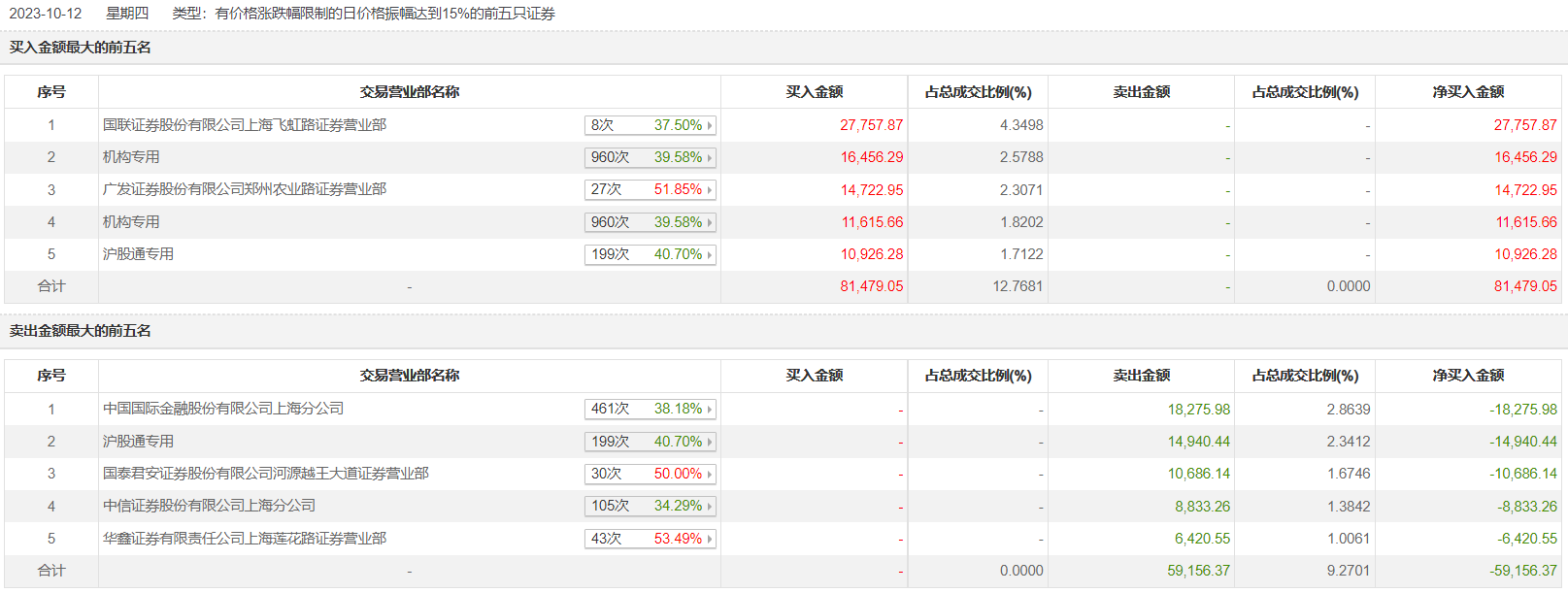 10月12日跌4.42%,成交额63.81亿元,换手率15.95%,盘后龙虎榜数据显示,沪股通专用席位买入1.09亿元并卖出1.49亿元,二机构专用席位净买入2.81亿元。