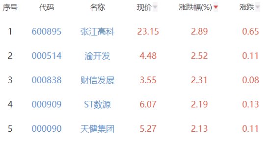 其中,张江高科、渝开发、财信发展、ST数源、天健集团位列板块涨幅榜前五位,涨幅分别为2.89%、2.52%、2.31%、2.19%、2.13%。