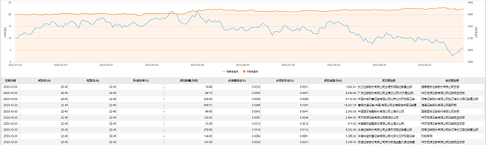 收涨0.94%,收盘价为22.45元,发生10笔大宗交易,合计成交量2023.99万股,成交金额4.54亿元。